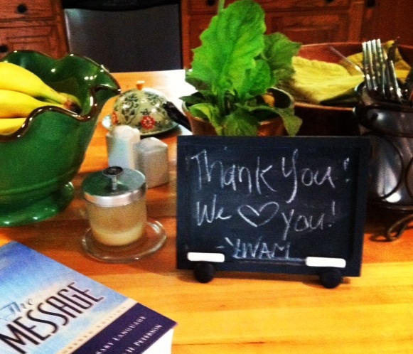 I found a little message on my chalkboard after they had left and it touched my heart the same way I had hoped that my message would do for them.